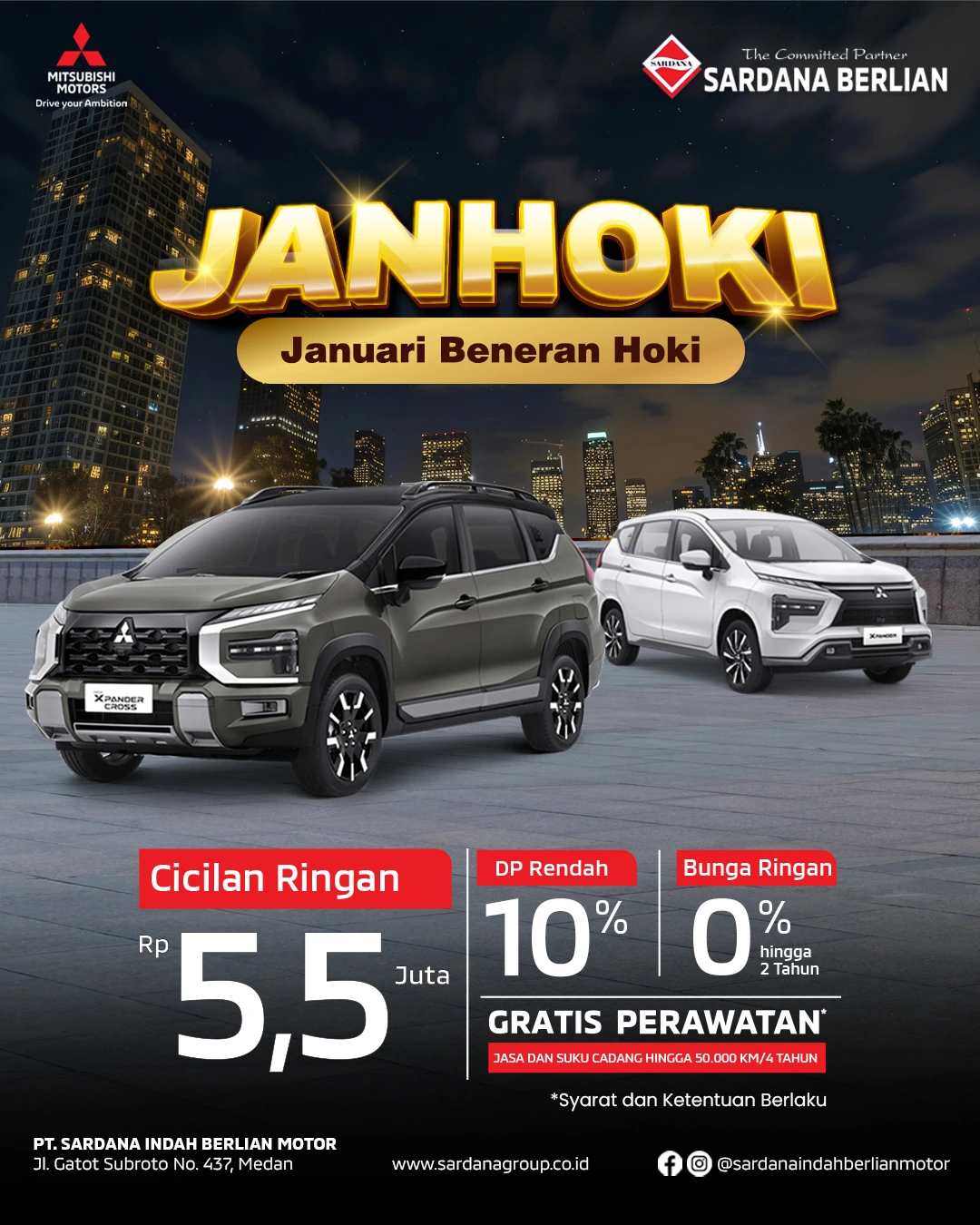 Jangan lewatkan promo JANHOKI (Januari Beneran Hoki) untuk pembelian Mitsubishi Xpander dan Xpander Cross spesial Januari 2026.