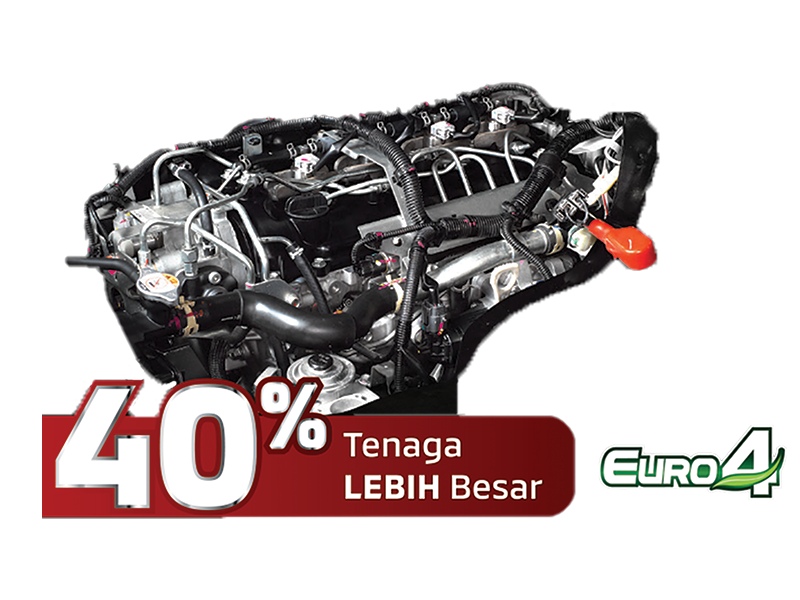 Dengan sistem commonrail yang dilengkapi intercooler dan turbocharger memberikan torsi yang lebih besar dan bertenaga, serta menghasilkan gas buang EURO 4.